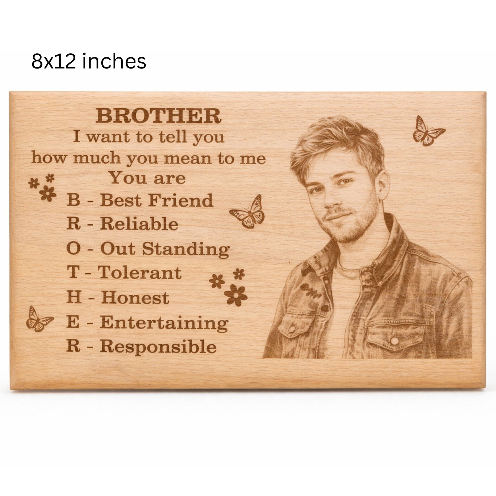 Standard 8×12 wooden engraving with custom photo/text.