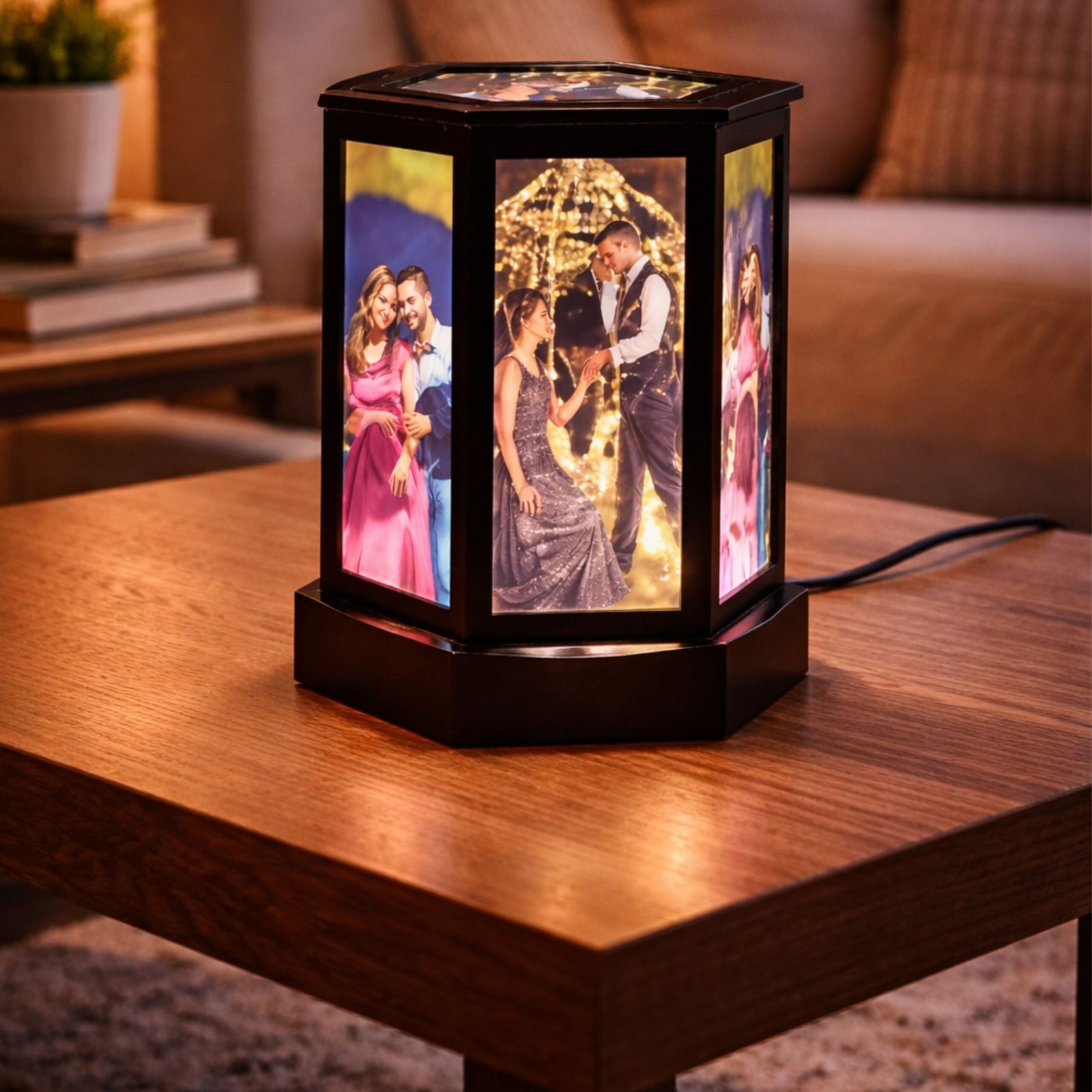 A trendy hexagon lamp that adds a modern touch to your space. Customise with text or images.