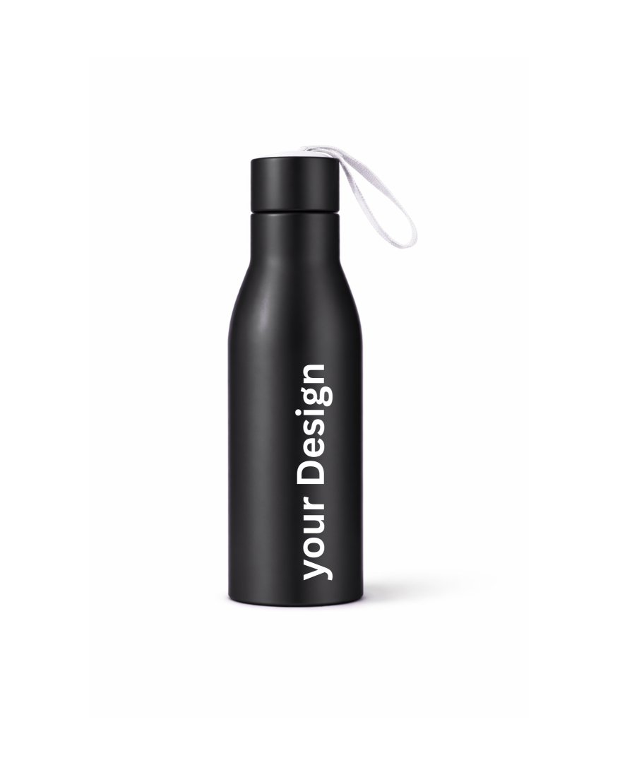Tags: black metal bottle, corporate gift bottle, custom black bottle, matte bottle, minimal bottle, personalised steel bottle