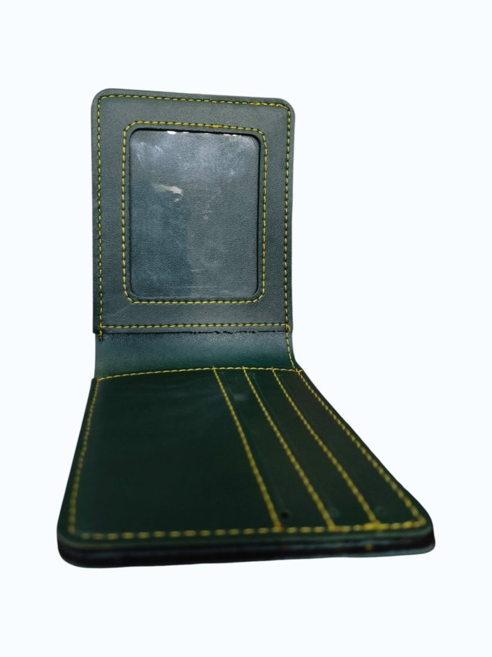 Premium leather wallet with secure compartments & transparent ID slot